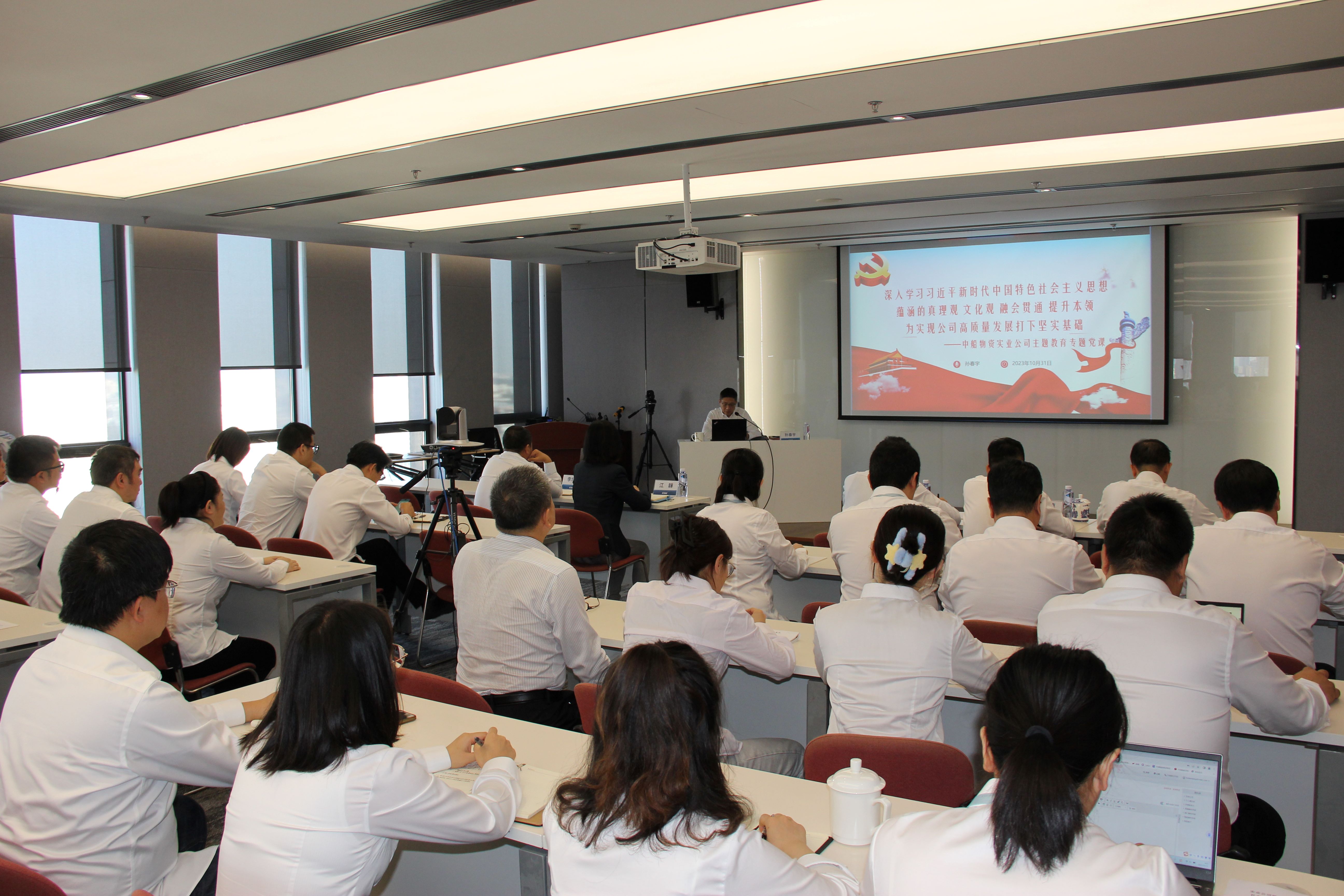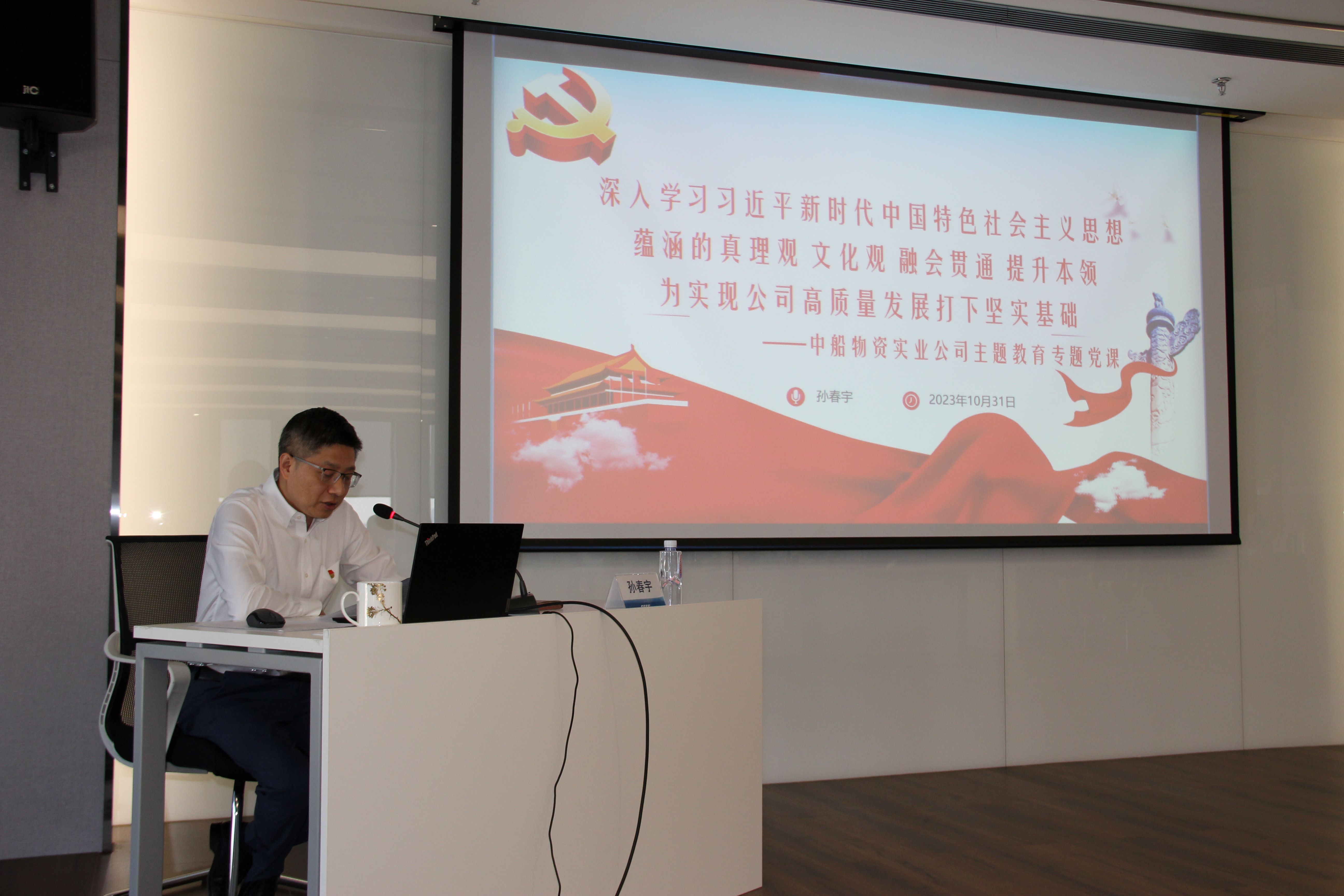10月31日,中船物資實業公司黨委書記、董事長、主題教育領導小組組長孫春宇同志以“深入學習貫徹習近平新時代中國特色社會主義思想蘊涵的真理觀、文化觀,融會貫通、提升本領,為實現公司高質量發展打下堅實基礎”為題講授主題教育專題黨課。公司領導班子成員、黨委委員參加,集團公司主題教育巡回督導組第五組成員、中船物資黨群工作部人員列席。