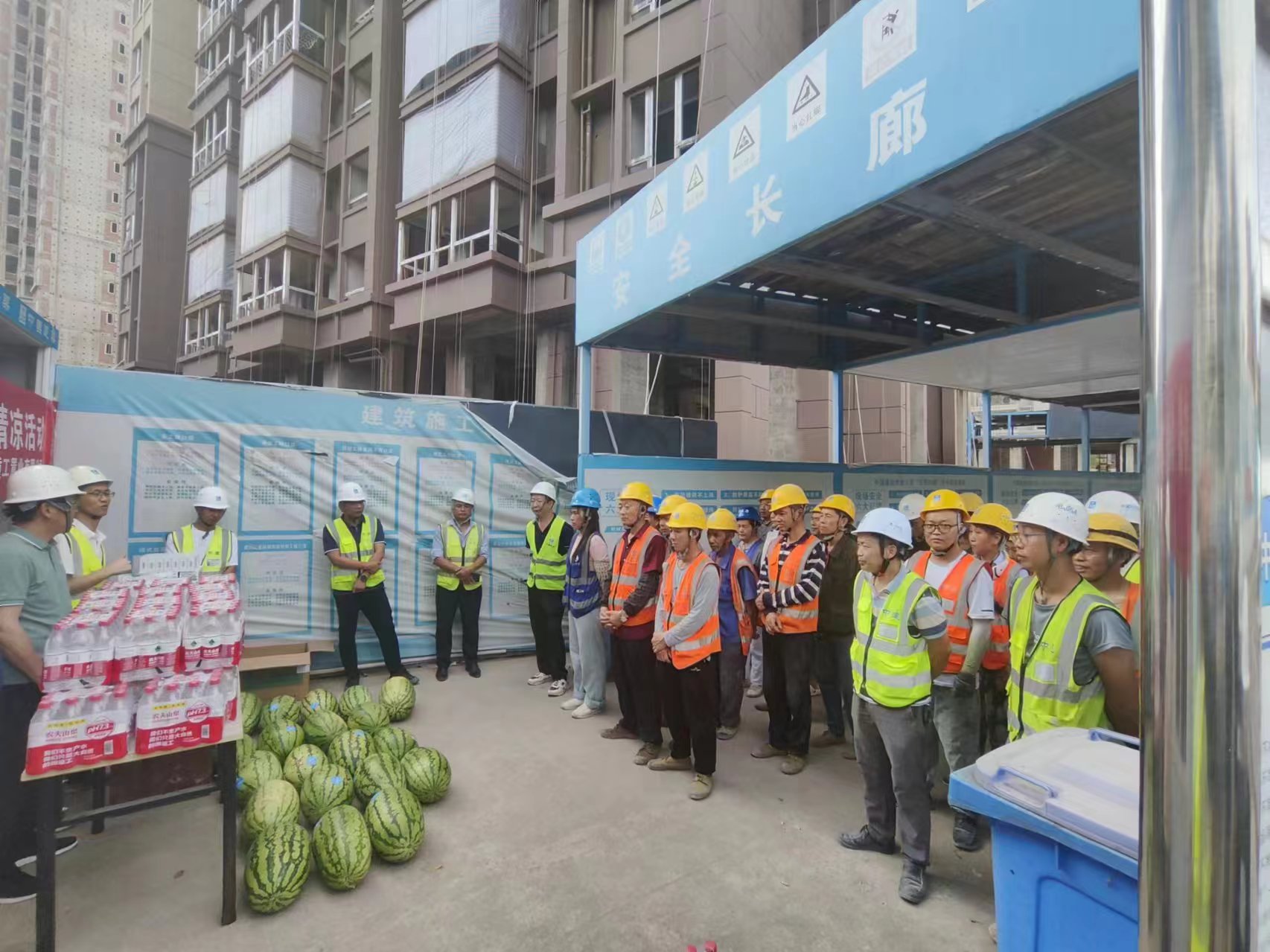 活動當天,重慶置業公司總經理樂云、副總經理殷茂林協同施工單位相關負責人向現場作業人員代表送去了各種防暑降溫用品,并代表公司向全體參建項目的作業人員表示慰問和感謝,同時強調了安全生產與防暑降溫工作的重要性。要求施工單位要始終把安全生產放在首位,切實關心工人的身體健康與勞動安全。在高溫天氣下,要科學合理地安排作息時間,采取避開高溫時段作業、輪換作業、減輕勞動強度等有效措施,確保作業人員的身體健康與生命安全。