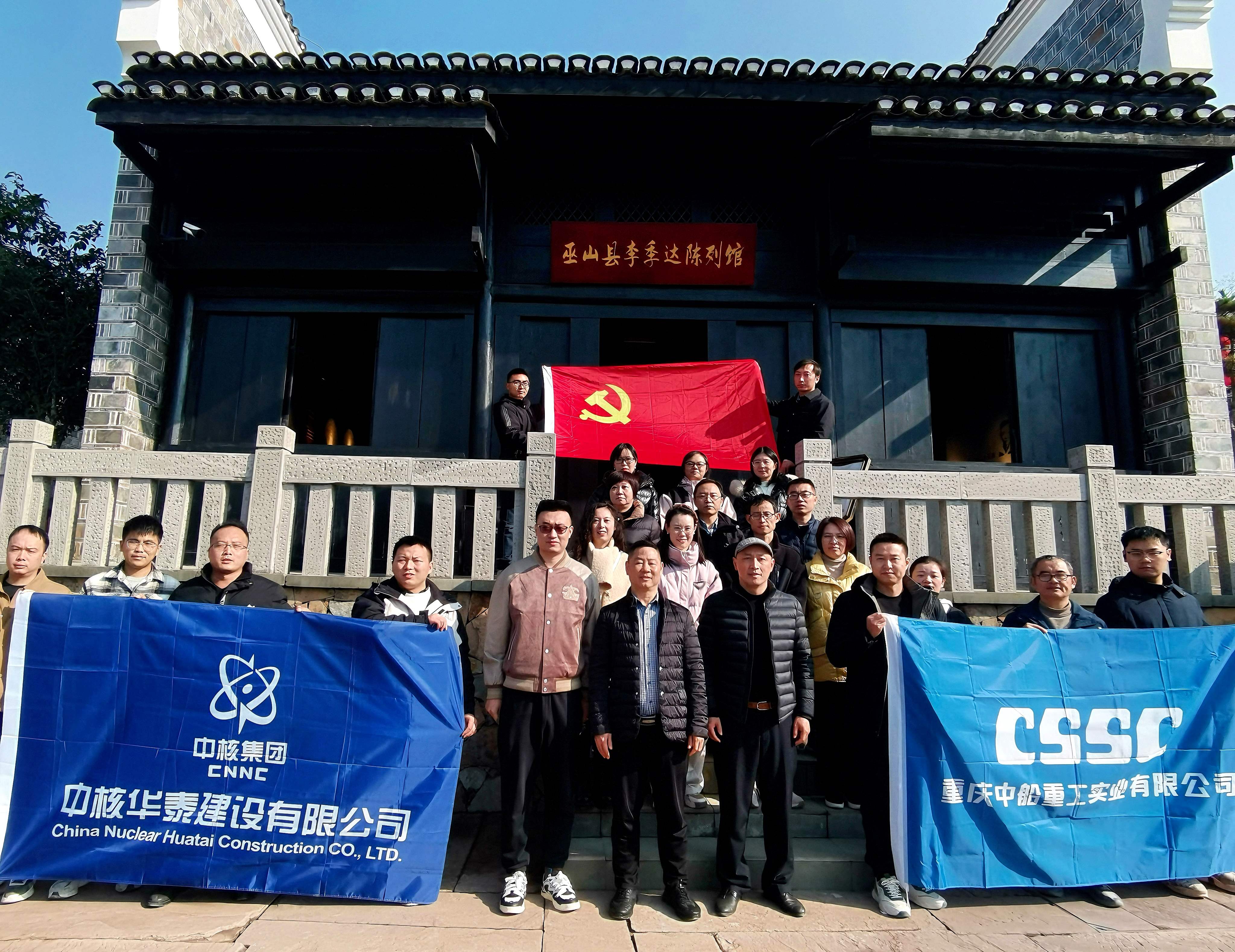 為持續深入開展黨史學習教育,追憶先烈事跡,汲取紅色力量,11月29日,中船物資實業公司萬州黨支部組織支部全體干部黨員職工,與萬州海悅城項目總包方中核華泰項目部黨支部全體黨員,一同赴重慶巫山縣李季達陳列館學習。