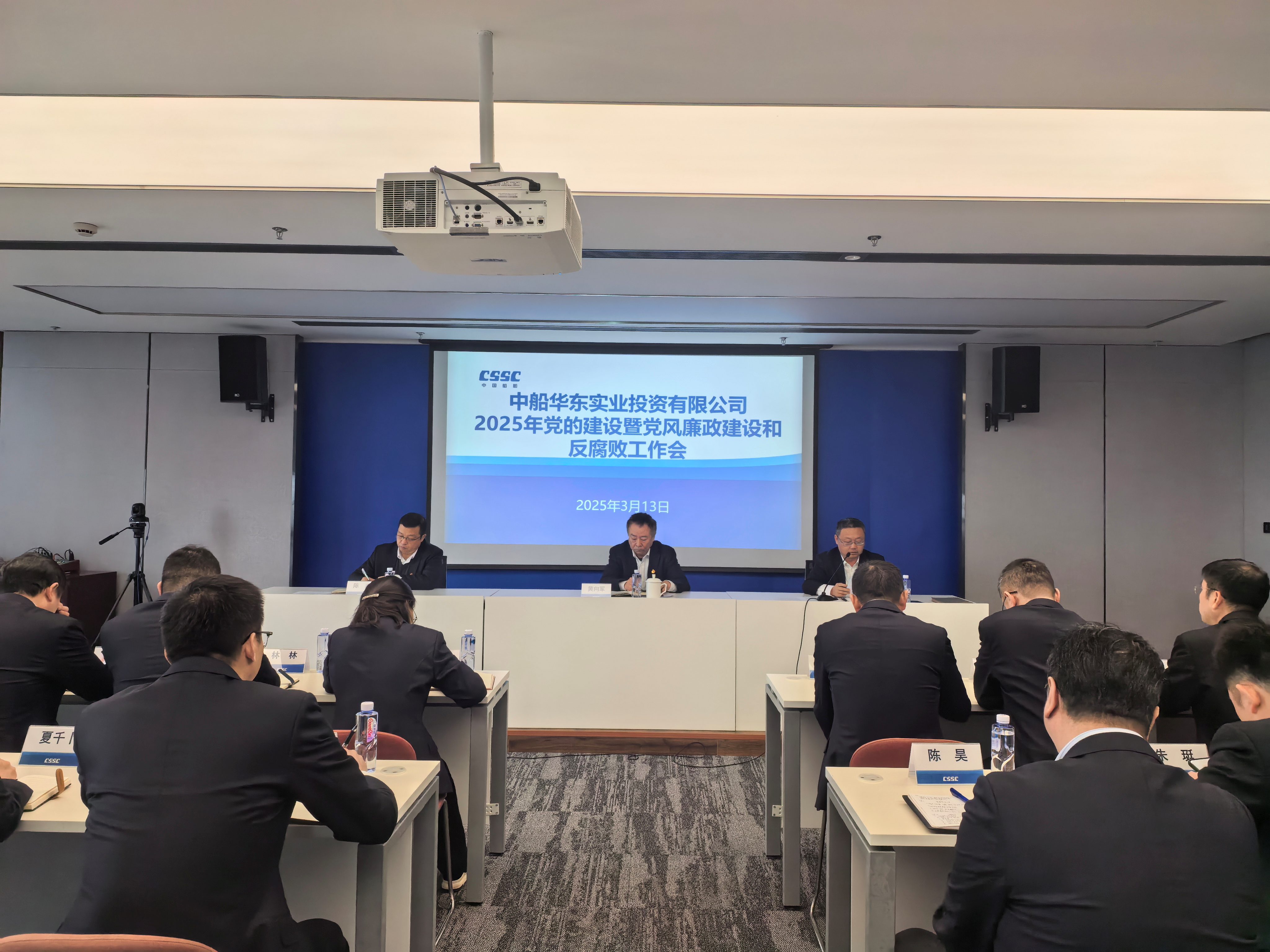 以高質量黨建引領公司高質量發展》的講話。公司黨委副書記、總經理黃向軍主持會議。公司紀委書記傳達中船集團、中船物資2025年黨的建設暨黨風廉政建設和反腐敗工作會議精神,并作2025年黨風廉政建設和反腐敗工作報告。